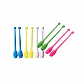 Времена, когда булава для гимнастики изготавливалась из дерева, давно прошли, и сегодняшние модели делают из каучука и пластика. Каучуковые булавы безопаснее пластиковых, и их предпочитают начинающие гимнастки, так как они лучше подходят для периода обучения. Одно из последних веяний – использование булав со специальным бархатным покрытием ручек, чтобы они не проскальзывали в руке.