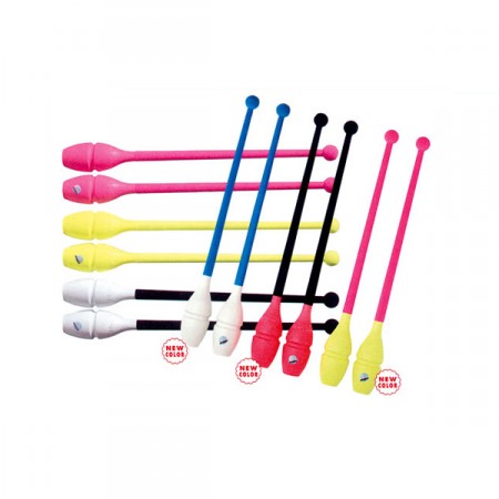 Времена, когда булава для гимнастики изготавливалась из дерева, давно прошли, и сегодняшние модели делают из каучука и пластика. Каучуковые булавы безопаснее пластиковых, и их предпочитают начинающие гимнастки, так как они лучше подходят для периода обучения. Одно из последних веяний – использование булав со специальным бархатным покрытием ручек, чтобы они не проскальзывали в руке.