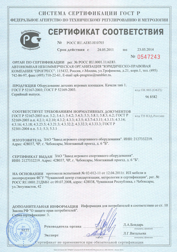 Проектирование, разработка, производство и поставка детского игрового и спортивного оборудования и строительных металлических конструкций соответствуют стандарту ISO 9001:2008 |