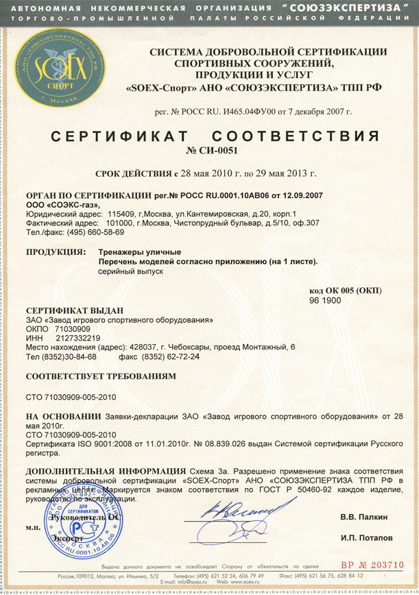 | Россия, система добровольной сертификации спортивных сооружений, продукции и услуг "SOEX-Спорт" АНО "СОЮЗЭКСПЕРТИЗА" ТПП РФ |